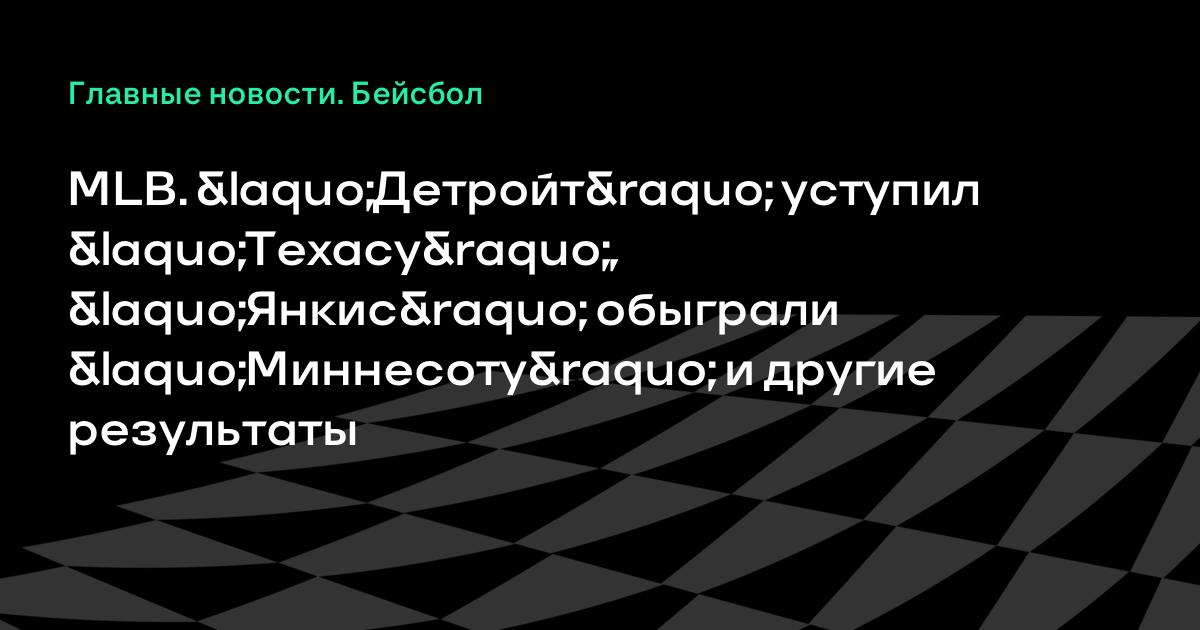 MLB. «Детройт» уступил «Техасу», «Янкис» обыграли «Миннесоту» и другие результаты