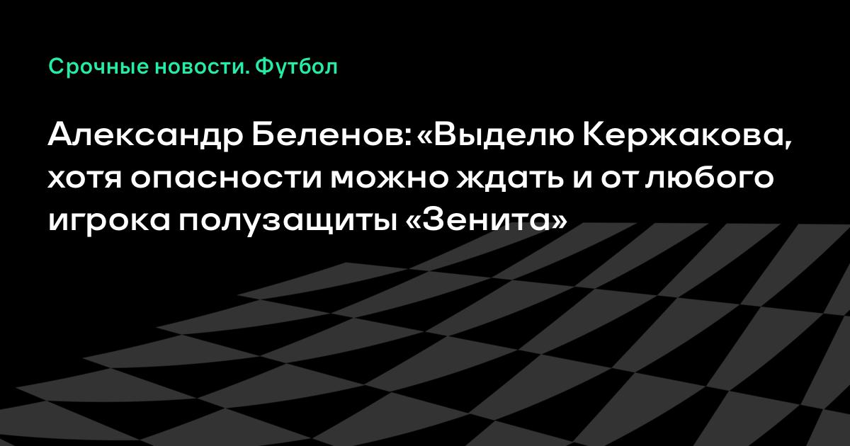 Александр Беленов: «Выделю Кержакова, хотя опасности можно ждать и от любого игрока полузащиты «Зенита»