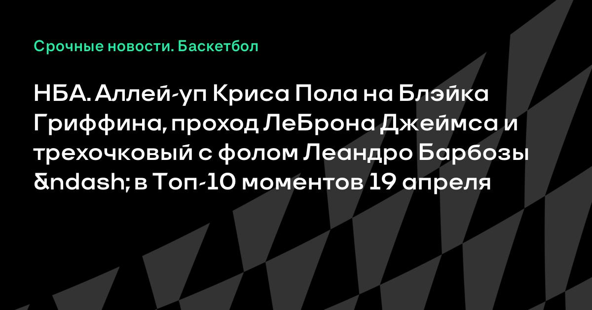 20 апреля 2012, 15:18 НБА. Аллей-уп Криса Пола на Блэйка Гриффина, проход ЛеБрона Джеймса и трехочковый с фолом Леандро Барбозы – в Топ-10 моментов 19 апреля Баскетбол НБА Баскетбол - видео