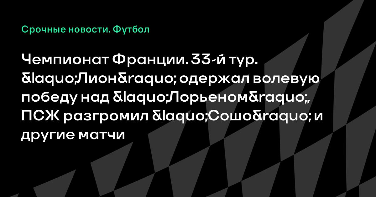 Чемпионат Франции. 33-й тур. «Лион» одержал волевую победу над «Лорьеном», ПСЖ разгромил «Сошо» и другие матчи