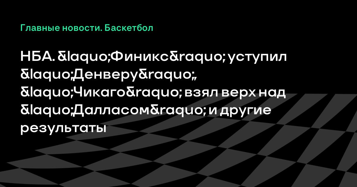 НБА. «Финикс» уступил «Денверу», «Чикаго» взял верх над «Далласом» и другие результаты