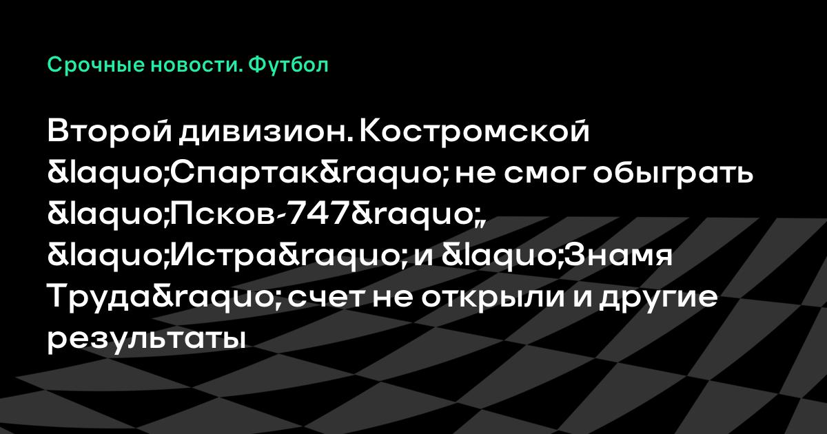 Второй дивизион. Костромской «Спартак» не смог обыграть «Псков-747», «Истра» и «Знамя Труда» счет не открыли и другие результаты