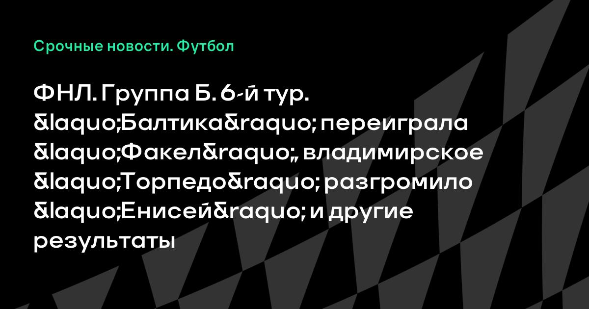 ФНЛ. Группа Б. 6-й тур. «Балтика» переиграла «Факел», владимирское «Торпедо» разгромило «Енисей» и другие результаты