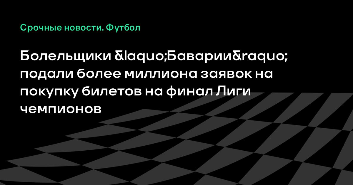 Болельщики «Баварии» подали более миллиона заявок на покупку билетов на финальный матч Лиги чемпионов против «Челси», сообщает AFP.