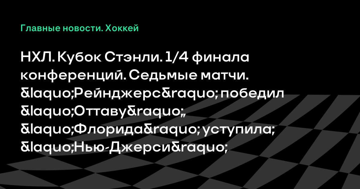 НХЛ. Кубок Стэнли. 1/4 финала конференций. Седьмые матчи. «Рейнджерс» победил «Оттаву», «Флорида» уступила; «Нью-Джерси»