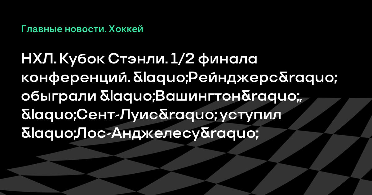 НХЛ. Кубок Стэнли. 1/2 финала конференций. «Рейнджерс» обыграли «Вашингтон», «Сент-Луис» уступил «Лос-Анджелесу»