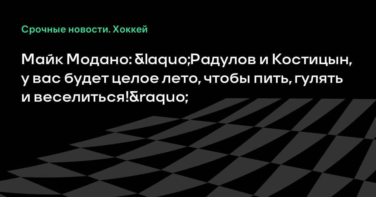 – Радулов и Костицын, у вас будет целое лето, чтобы пить, гулять и веселиться! Уверен, ваши партнеры просто в восторге... – написал Модано в своем твиттере.