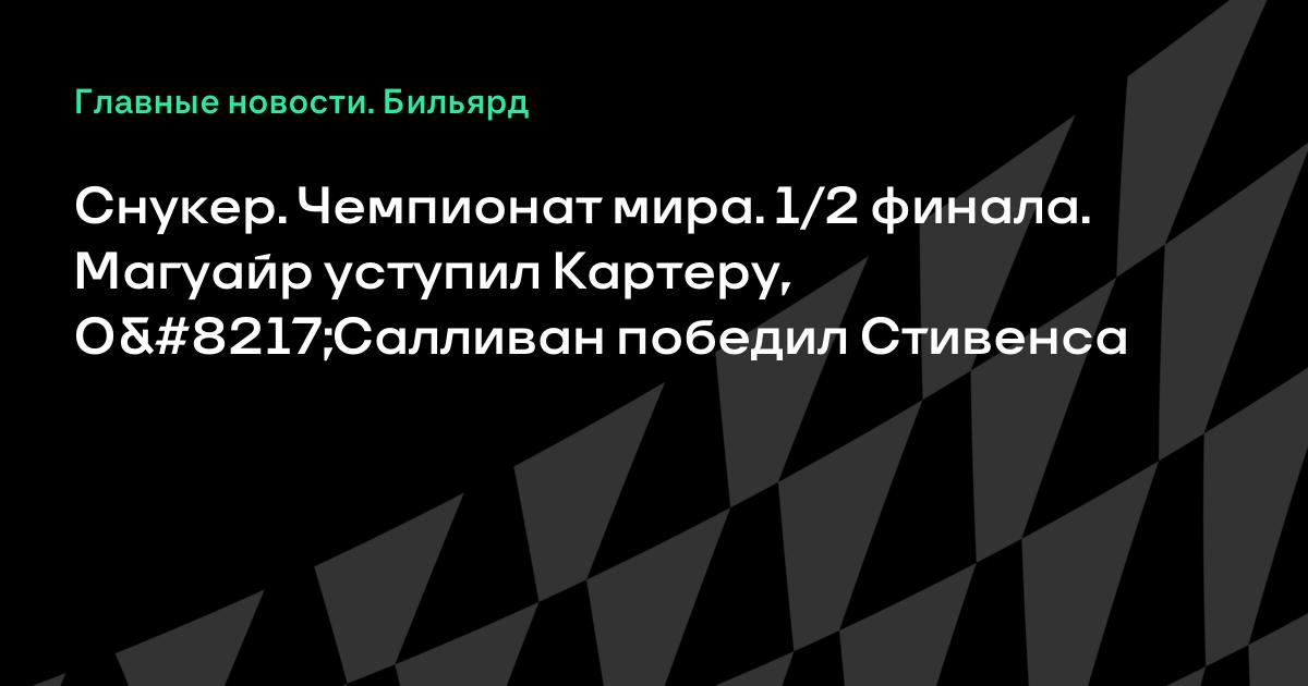 Снукер. Чемпионат мира. 1/2 финала. Магуайр уступил Картеру, О’Салливан победил Стивенса