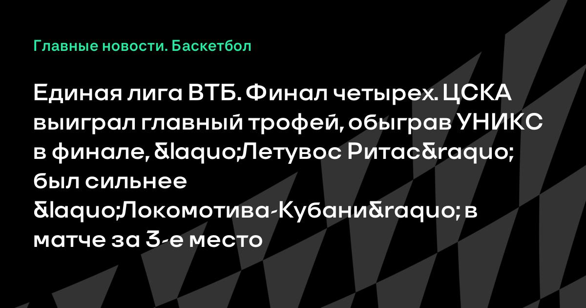 Единая лига ВТБ. Финал четырех. ЦСКА выиграл главный трофей, обыграв УНИКС в финале, «Летувос Ритас» был сильнее «Локомотива-Кубани» в матче за 3-е место