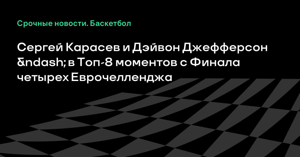 3 мая 2012, 13:16 Сергей Карасев и Дэйвон Джефферсон – в Топ-8 моментов с Финала четырех Еврочелленджа Баскетбол Еврочеллендж Баскетбол - видео