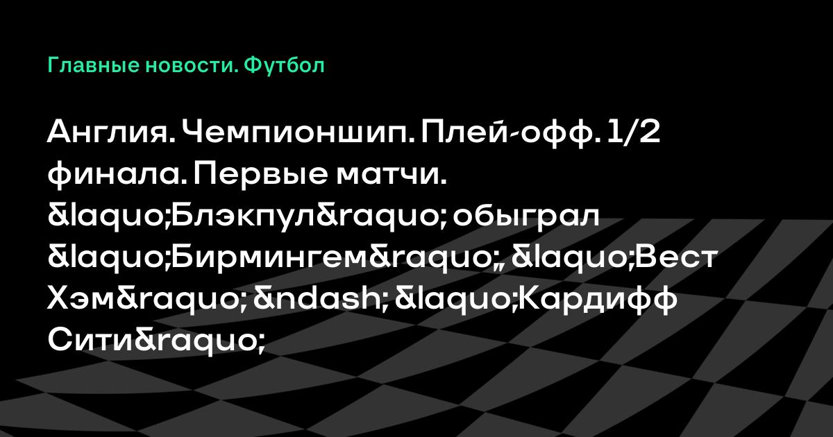 Англия. Чемпионшип. Плей-офф. 1/2 финала. Первые матчи. «Блэкпул» обыграл «Бирмингем», «Вест Хэм» – «Кардифф Сити»