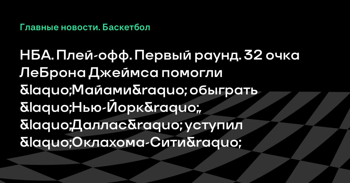 НБА. Плей-офф. Первый раунд. 32 очка ЛеБрона Джеймса помогли «Майами» обыграть «Нью-Йорк», «Даллас» уступил «Оклахома-Сити»