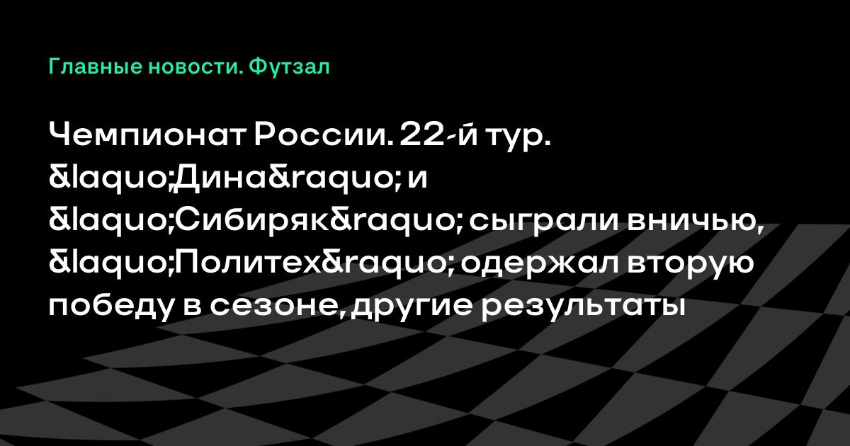 Чемпионат России. 22-й тур. «Дина» и «Сибиряк» сыграли вничью, «Политех» одержал вторую победу в сезоне, другие результаты