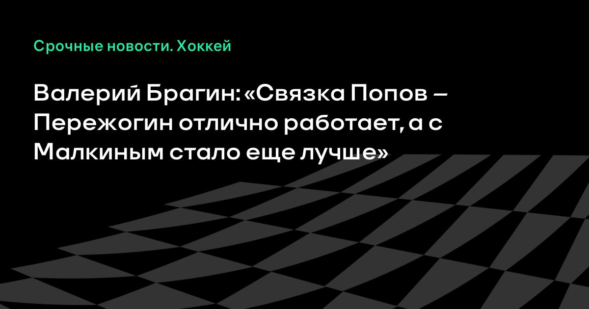 Валерий Брагин: «Связка Попов – Пережогин отлично работает, а с Малкиным стало еще лучше»
