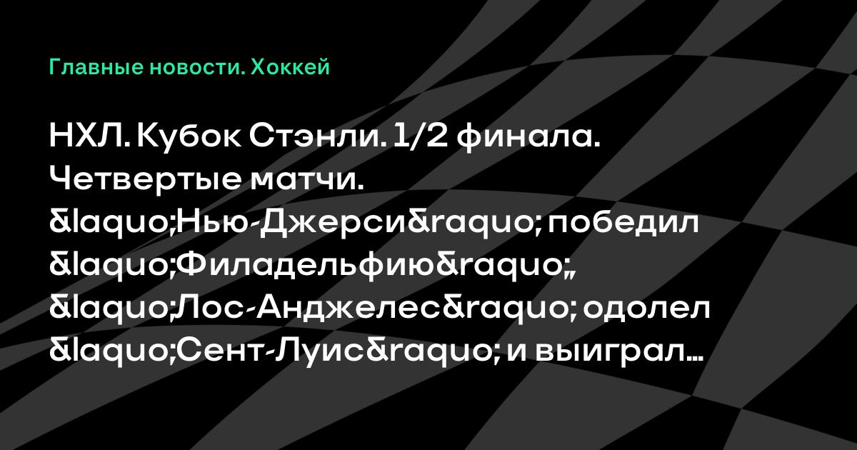 НХЛ. Кубок Стэнли. 1/2 финала. Четвертые матчи. «Нью-Джерси» победил «Филадельфию», «Лос-Анджелес» одолел «Сент-Луис» и выиграл серию