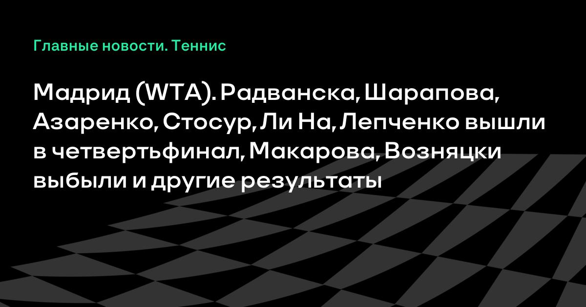 Мадрид (WTA). Радванска, Шарапова, Азаренко, Cтосур, Ли На, Лепченко вышли в четвертьфинал, Макарова, Возняцки выбыли и другие результаты