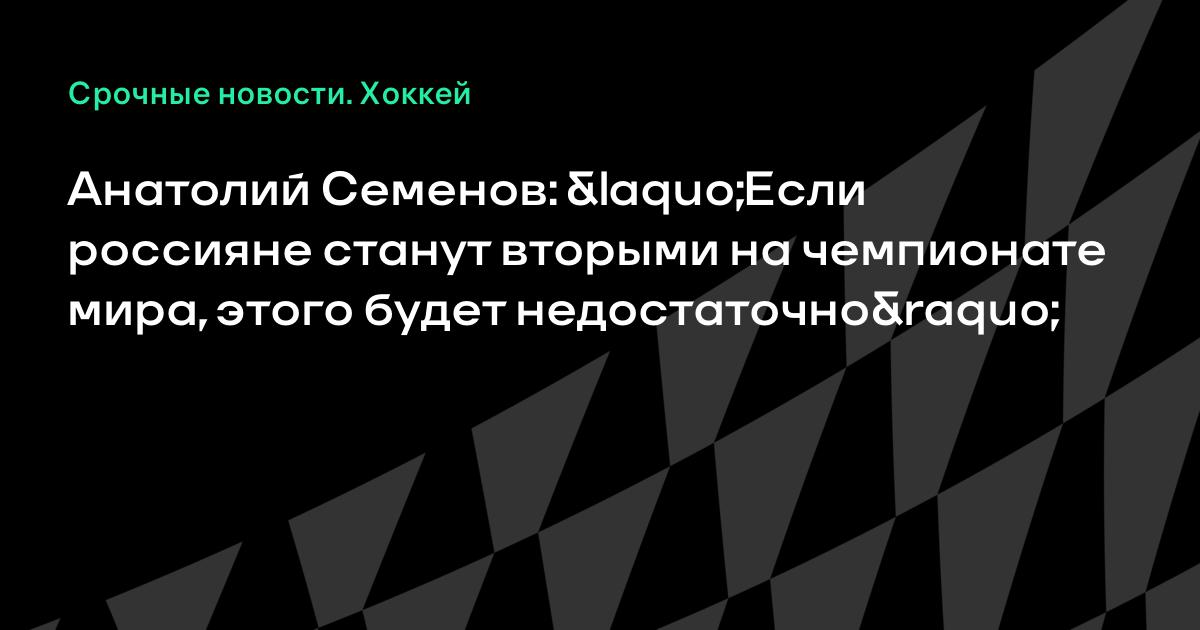 Анатолий Семенов: «Если россияне станут вторыми на чемпионате мира, этого будет недостаточно»