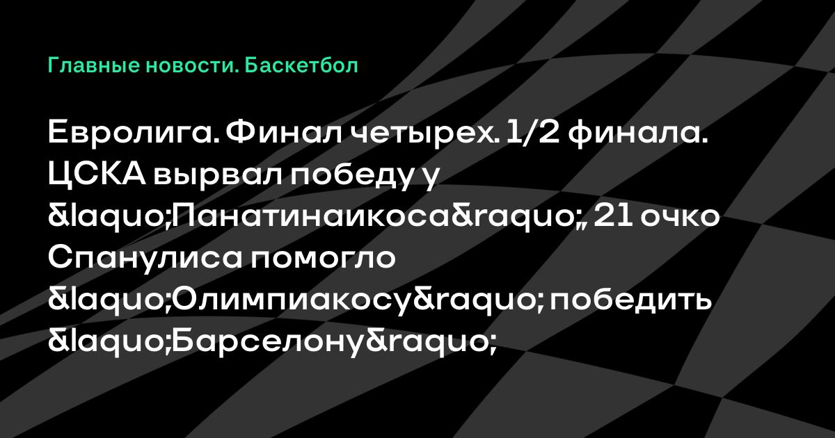 Евролига. Финал четырех. 1/2 финала. ЦСКА вырвал победу у «Панатинаикоса», 21 очко Спанулиса помогло «Олимпиакосу» победить «Барселону»