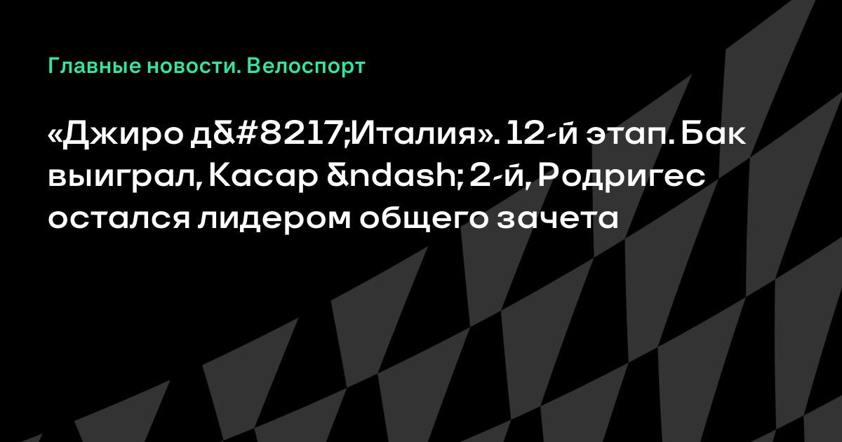 Сегодня прошел 12-й этап веломногодневки «Джиро д’Италия». Победу одержал один из участников отрыва – датчанин Ларс Бак. Испанец Хоаким Родригес из «Катюши» остался лидером общего зачета.