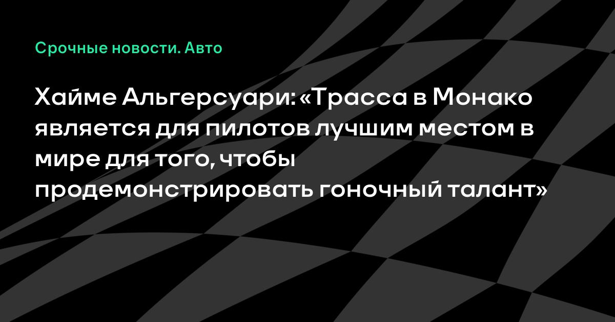 Хайме Альгерсуари: «Трасса в Монако является для пилотов лучшим местом в мире для того, чтобы продемонстрировать гоночный талант»