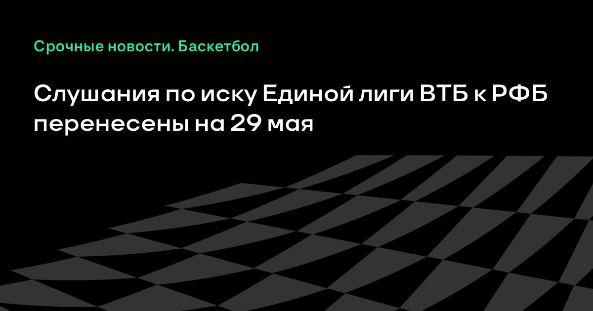 Арбитражный суд Москвы отложил на 29 мая слушания по иску АНО «Единая баскетбольная лига», которая проводит чемпионат Единой лиги ВТБ, к РФБ о взыскании 37,2 миллиона рублей, сообщает агентство «Р-Спорт».