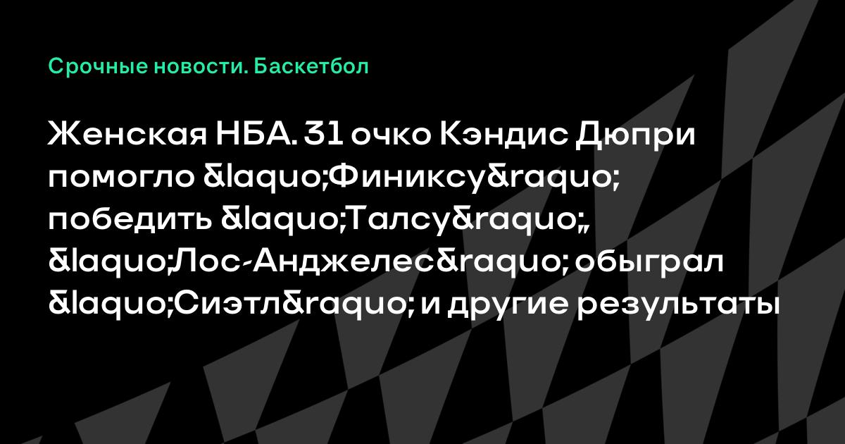 Женская НБА. 31 очко Кэндис Дюпри помогло «Финиксу» победить «Талсу», «Лос-Анджелес» обыграл «Сиэтл» и другие результаты