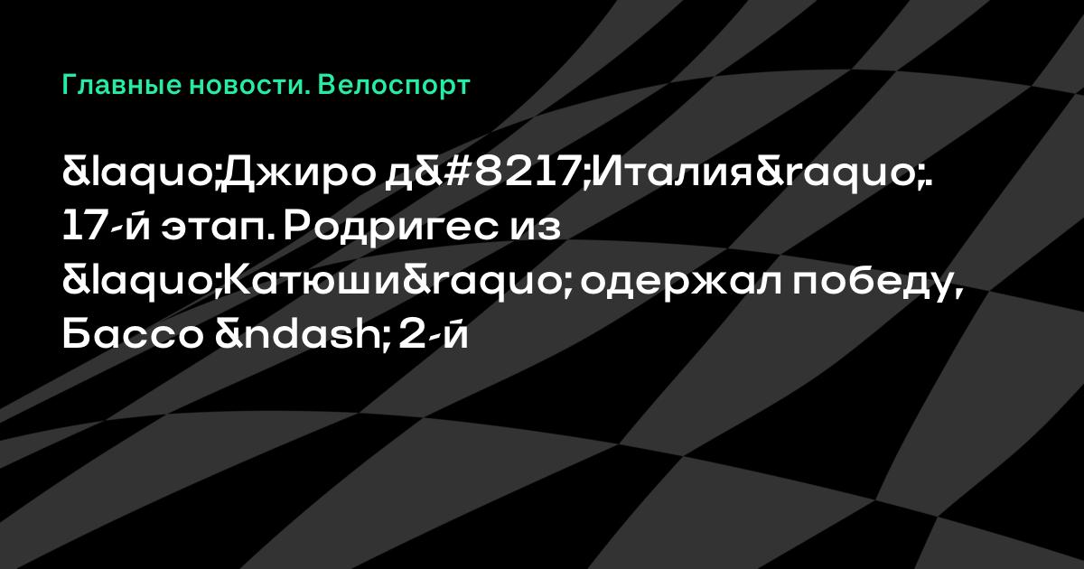 На веломногодневке «Джиро д’Италия» сегодня прошел 17-й этап. На этапе с двумя горами первой категории сложности победу одержал испанский гонщик российской команды «Катюша» Хоаким Родригес. Это вторая победа Родригеса на этой «Джиро» и десятая в истории «Катюши» на Гран-турах.