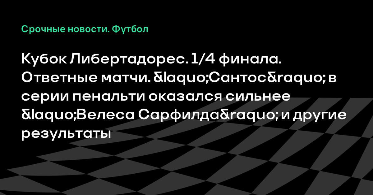 Кубок Либертадорес. 1/4 финала. Ответные матчи. «Сантос» в серии пенальти оказался сильнее «Велеса Сарфилда» и другие результаты