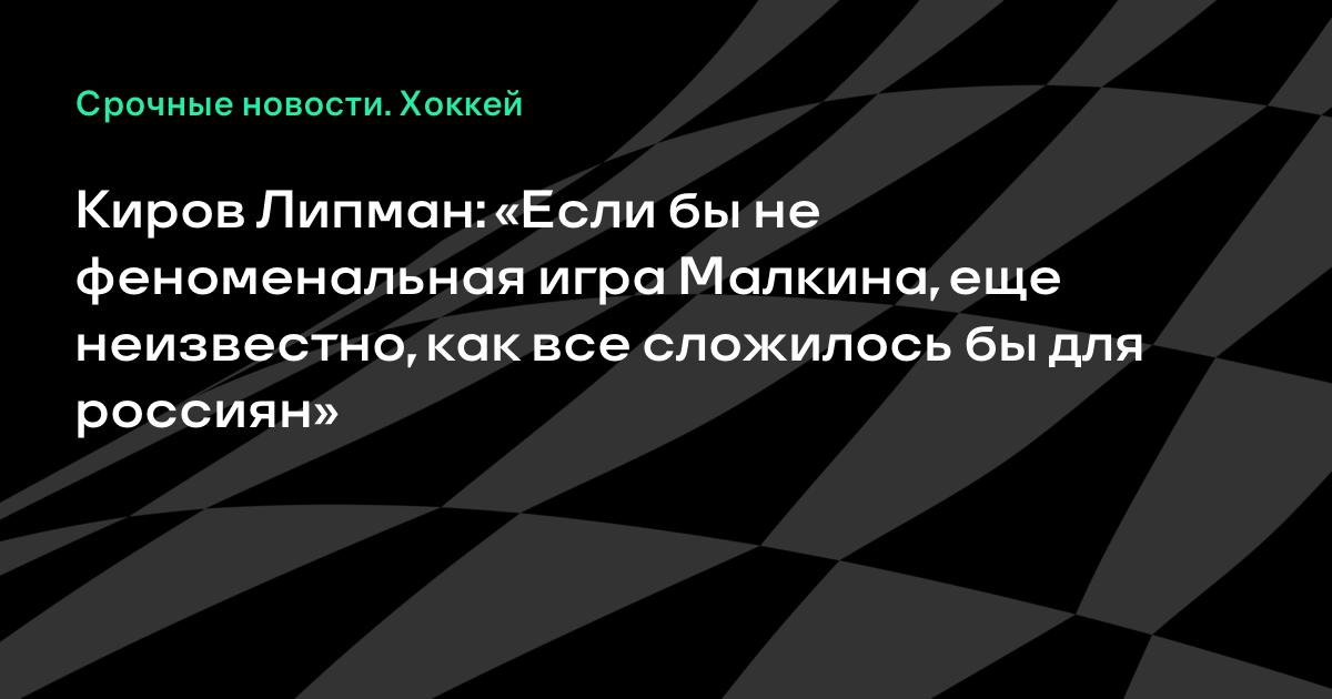 Киров Липман: «Если бы не феноменальная игра Малкина, еще неизвестно, как все сложилось бы для россиян»