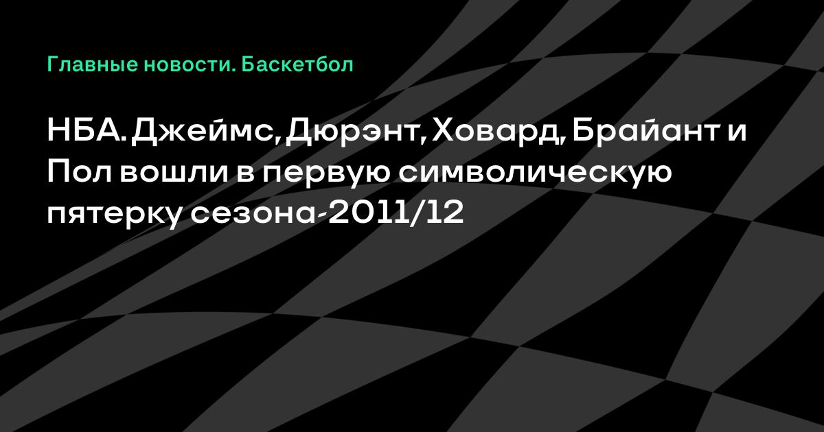 Самый полезный игрок сезона-2011/12 форвард «Майами» ЛеБрон Джеймс, форвард «Оклахома-Сити» Кевин Дюрэнт, центровой «Орландо» Дуайт Ховард, защитник «Лейкерс» Кобе Брайант и разыгрывающий «Клипперс» Крис Пол были выбраны в первую символическую пятерку «All-NBA First Team», сообщает обозреватель Марк Спирс с своем Твиттере.