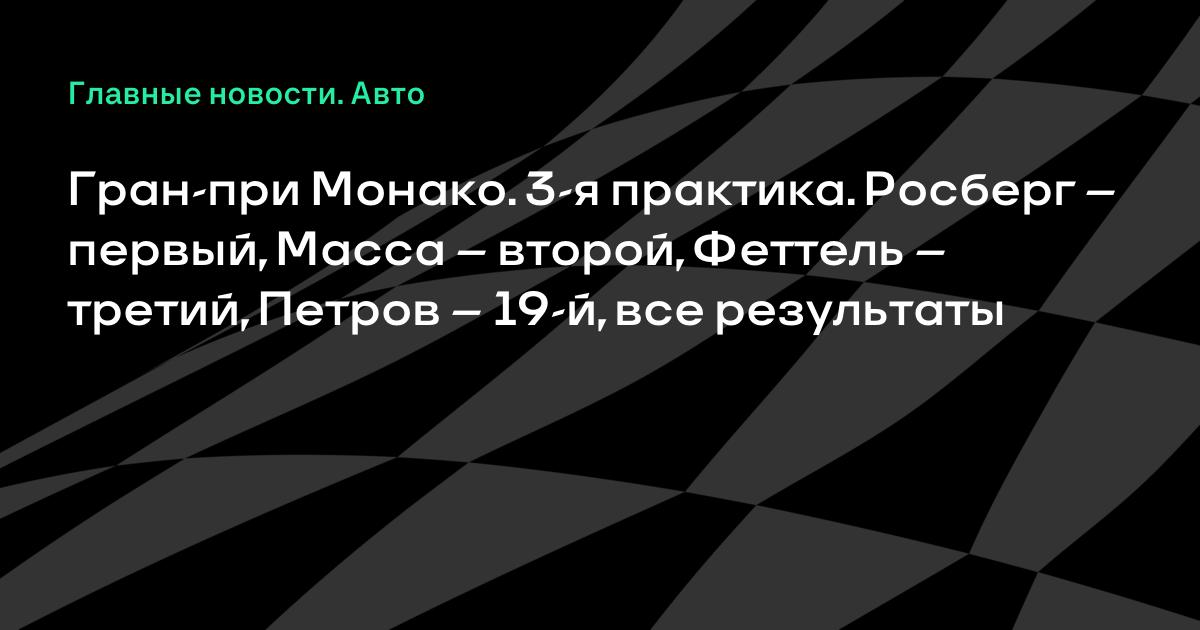 Гран-при Монако. 3-я практика. Росберг – первый, Масса – второй, Феттель – третий, Петров – 19-й, все результаты