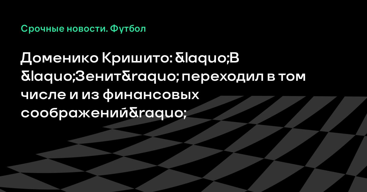 Доменико Кришито: «В «Зенит» переходил в том числе и из финансовых соображений»