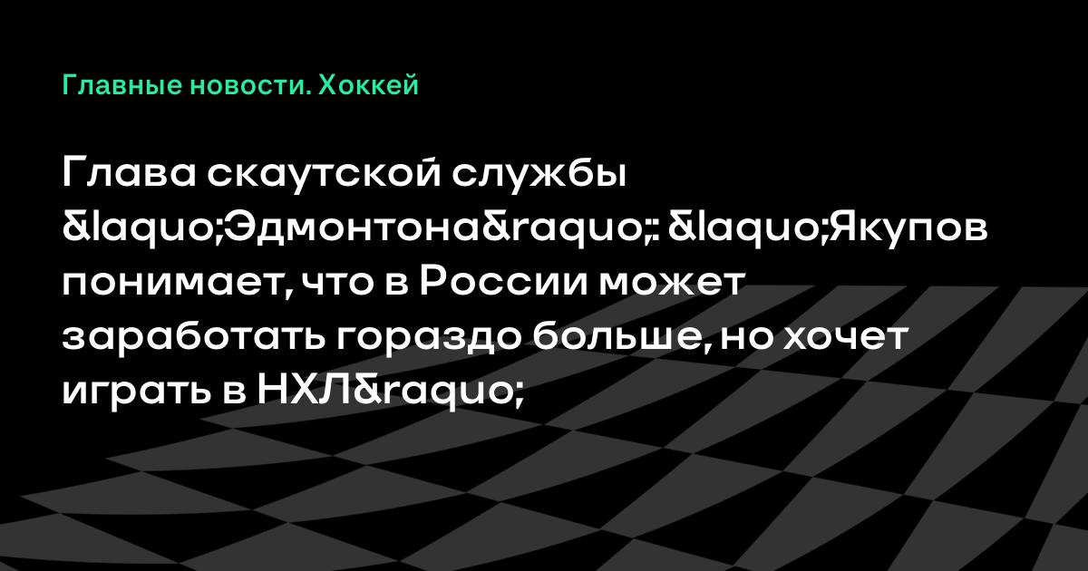 Глава скаутской службы «Эдмонтона»: «Якупов понимает, что в России может заработать гораздо больше, но хочет играть в НХЛ»