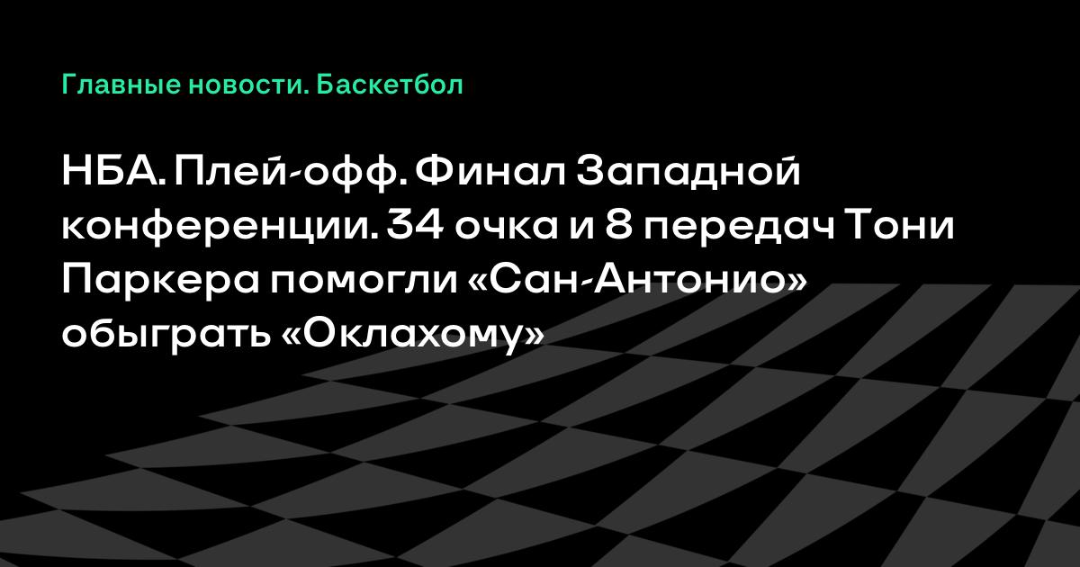 НБА. Плей-офф. Финал Западной конференции. 34 очка и 8 передач Тони Паркера помогли «Сан-Антонио» обыграть «Оклахому»