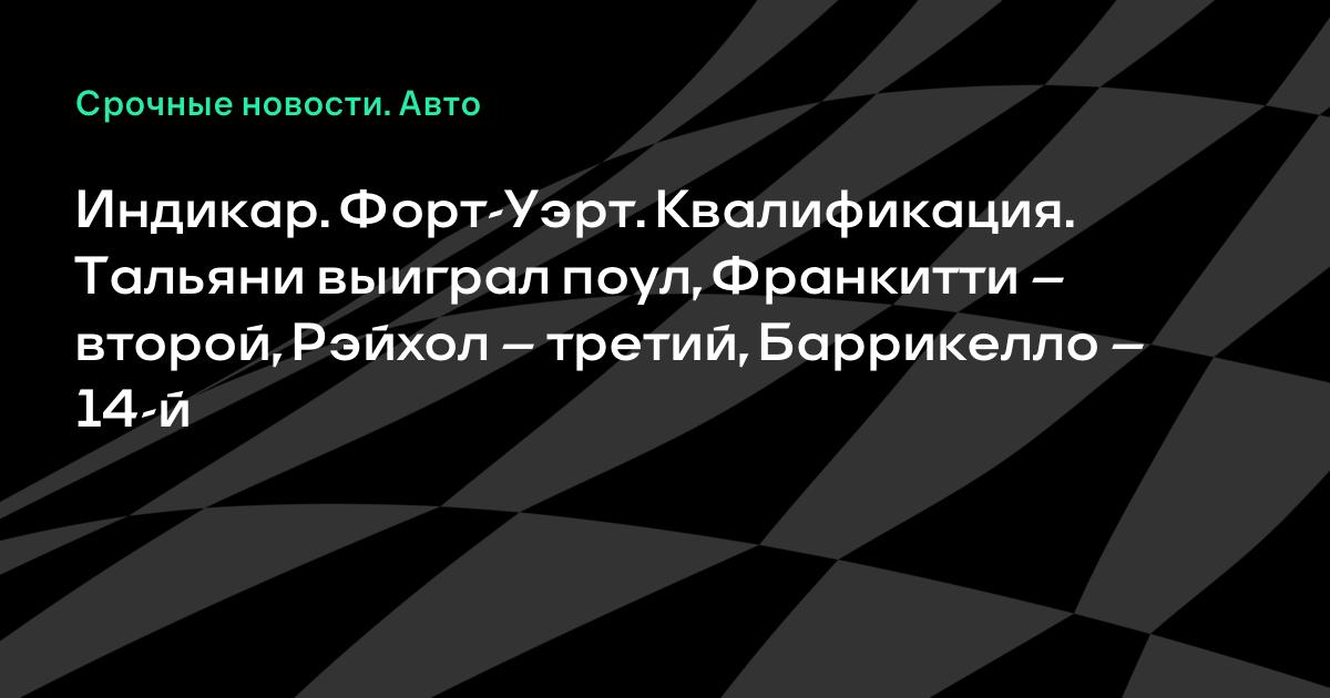 Индикар. Форт-Уэрт. Квалификация. Тальяни выиграл поул, Франкитти – второй, Рэйхол – третий, Баррикелло – 14-й