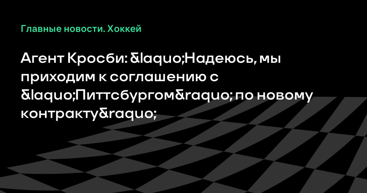 Агент Кросби: «Надеюсь, мы приходим к соглашению с «Питтсбургом» по новому контракту»
