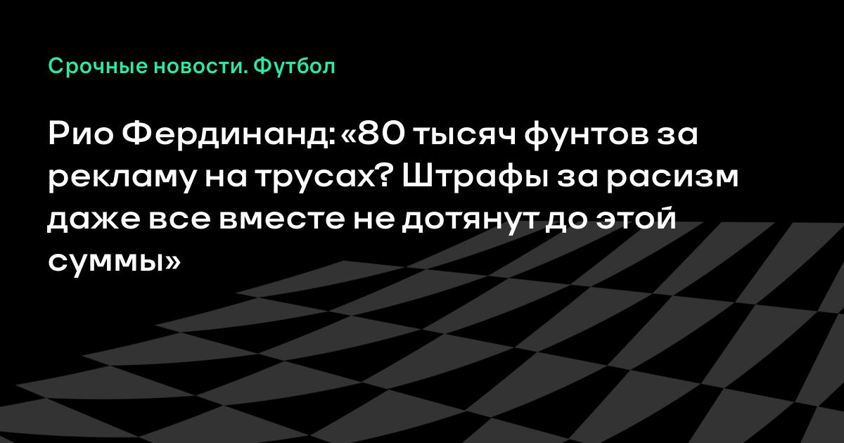 Рио Фердинанд: «80 тысяч фунтов за рекламу на трусах? Штрафы за расизм даже все вместе не дотянут до этой суммы»