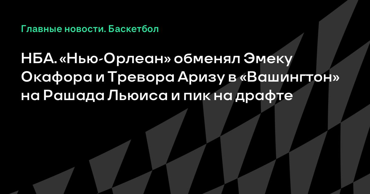 НБА. «Нью-Орлеан» обменял Эмеку Окафора и Тревора Аризу в «Вашингтон» на Рашада Льюиса и пик на драфте