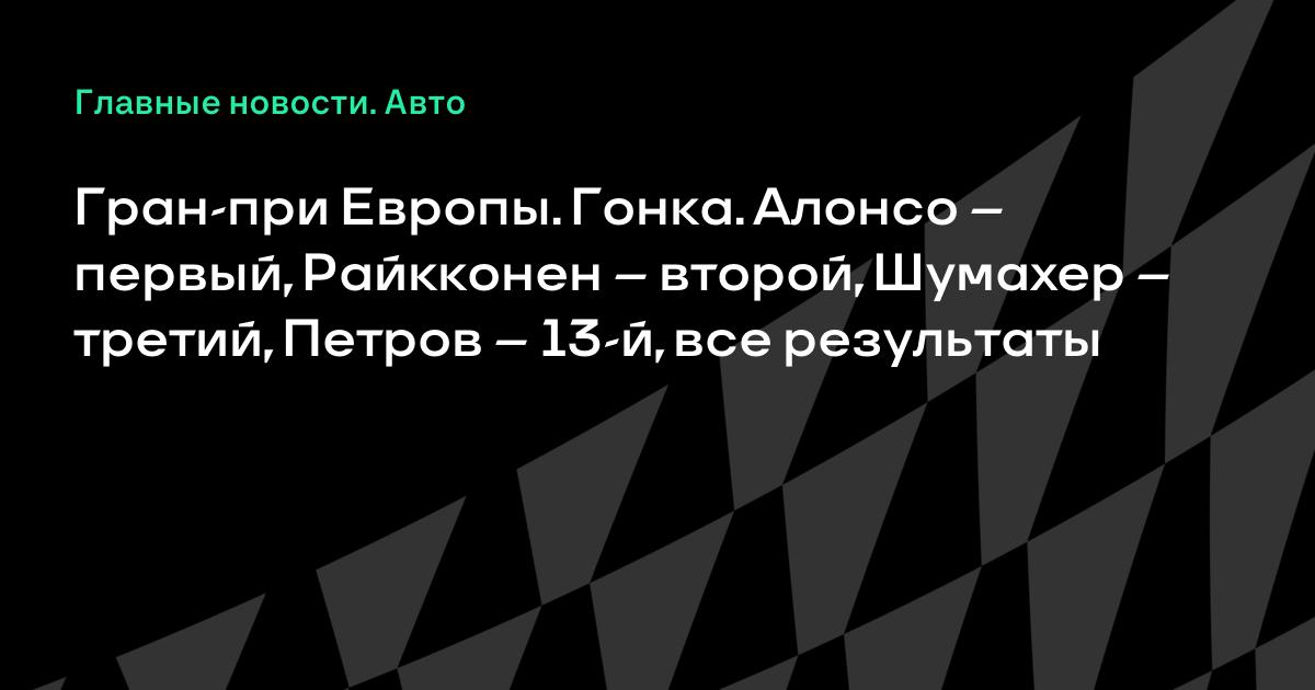 Гран-при Европы. Гонка. Алонсо – первый, Райкконен – второй, Шумахер – третий, Петров – 13-й, все результаты