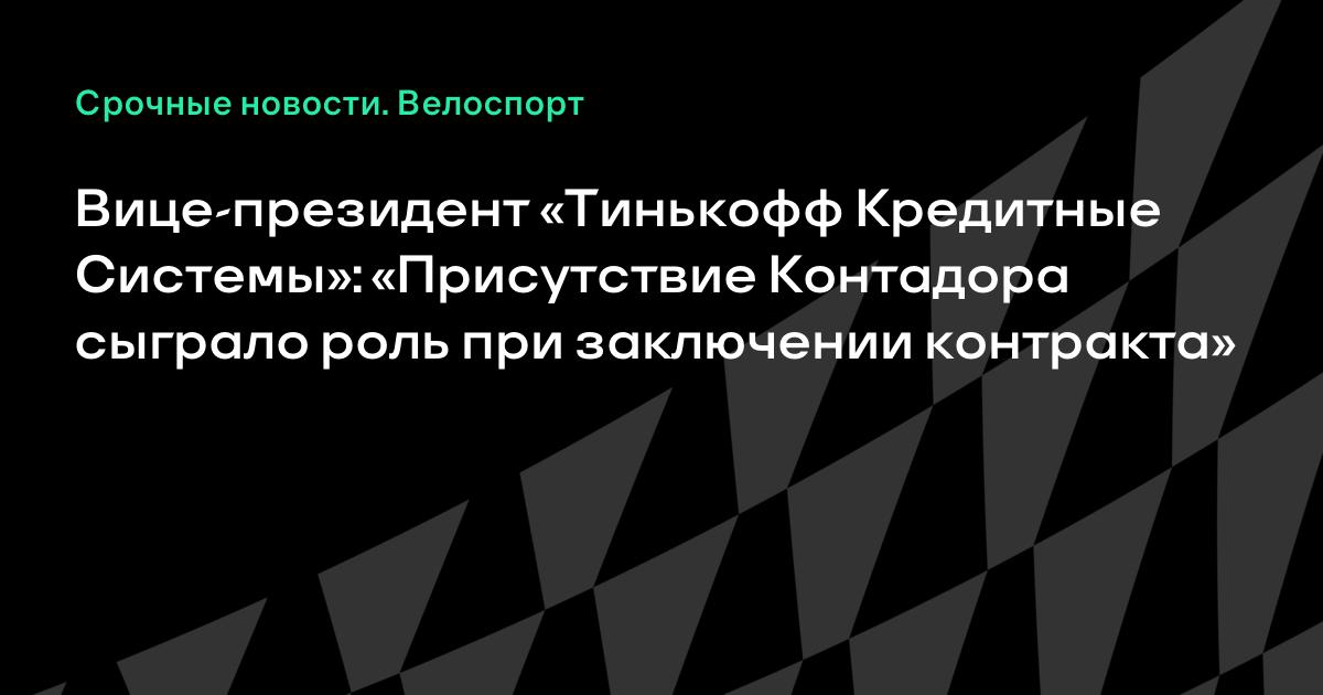 Вице-президент «Тинькофф Кредитные Системы»: «Присутствие Контадора сыграло роль при заключении контракта»