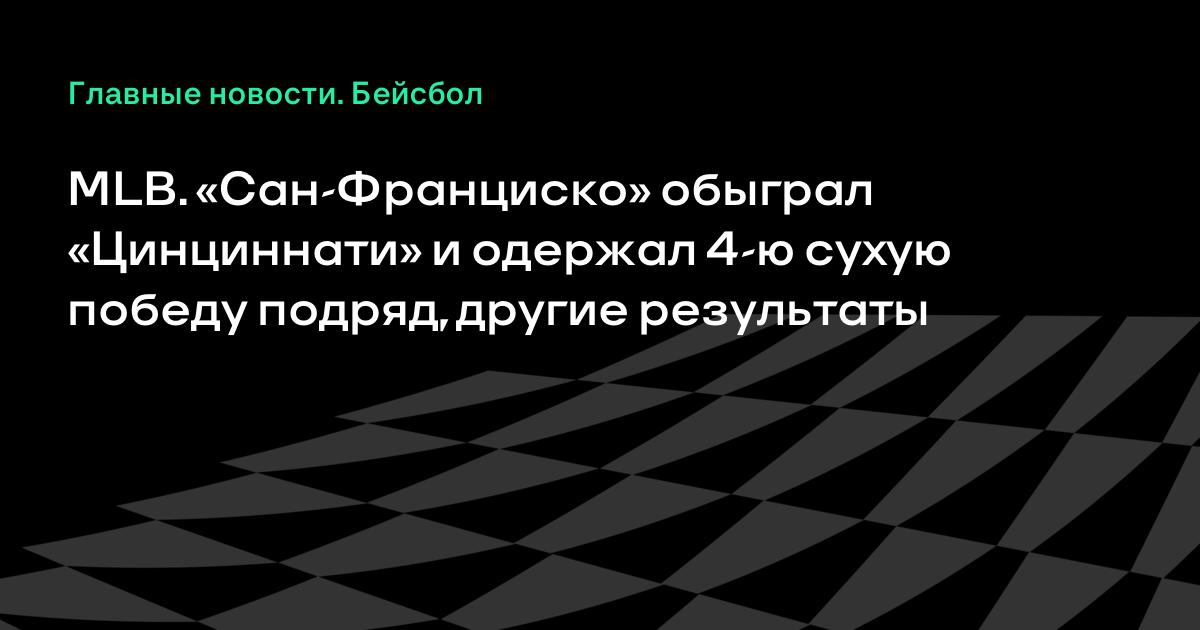 MLB. «Сан-Франциско» обыграл «Цинциннати» и одержал 4-ю сухую победу подряд, другие результаты