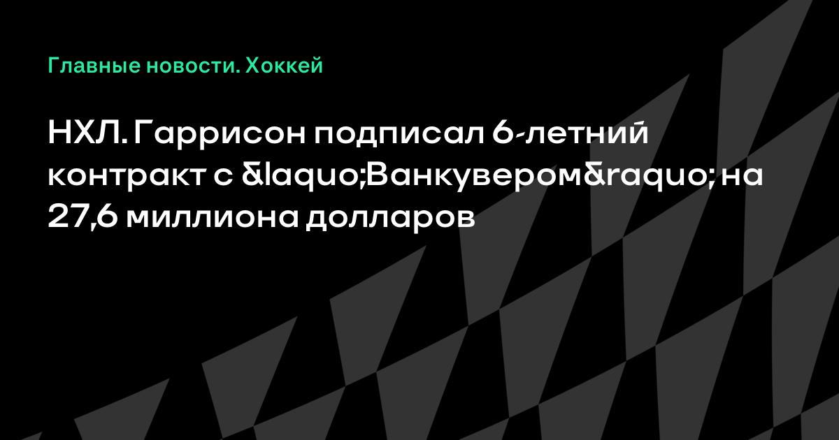 НХЛ. Гаррисон подписал 6-летний контракт с «Ванкувером» на 27,6 миллиона долларов