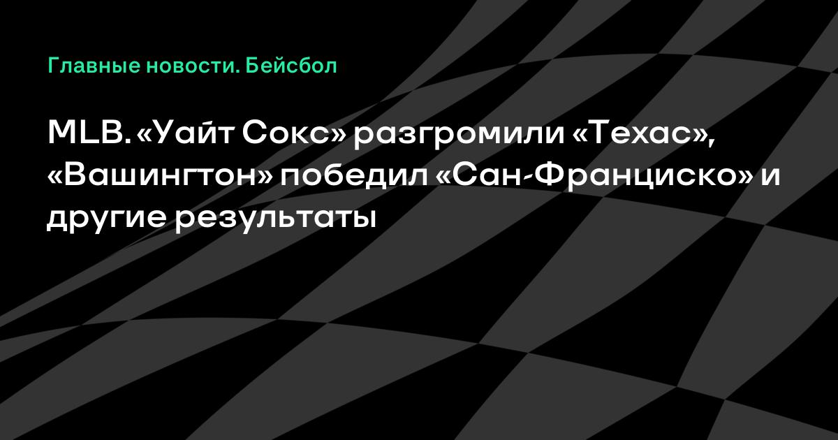 MLB. «Уайт Сокс» разгромили «Техас», «Вашингтон» победил «Сан-Франциско» и другие результаты
