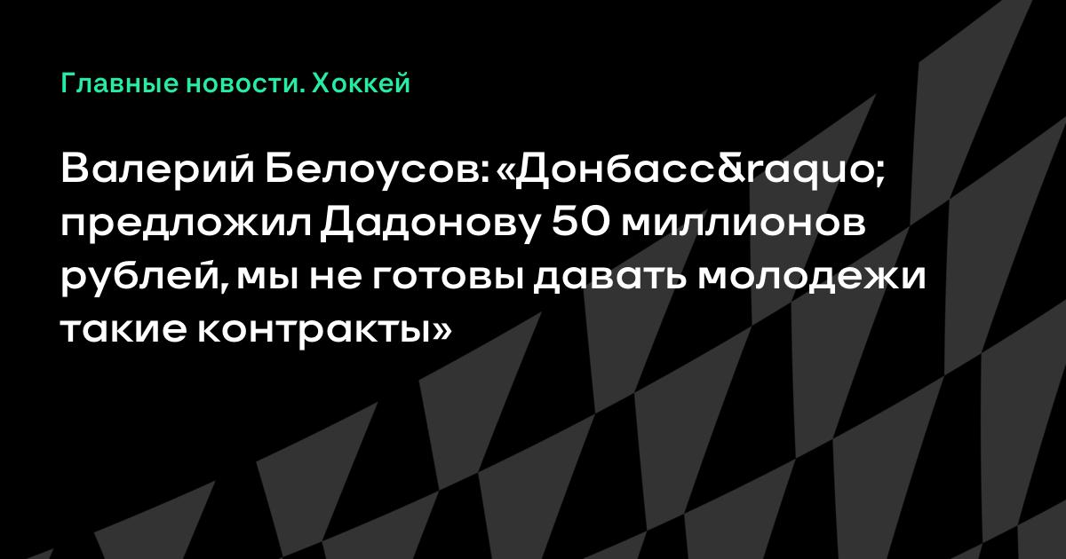Валерий Белоусов: «Донбасс» предложил Дадонову 50 миллионов рублей, мы не готовы давать молодежи такие контракты»
