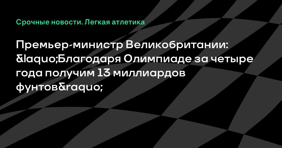 Премьер-министр Великобритании Дэвид Кэмерон сообщил, что от проведения Олимпиады-2012 и Паралимпийских игр в Лондоне в течение четырех лет экономика страны получит доход около 13 миллиардов фунтов стерлингов.