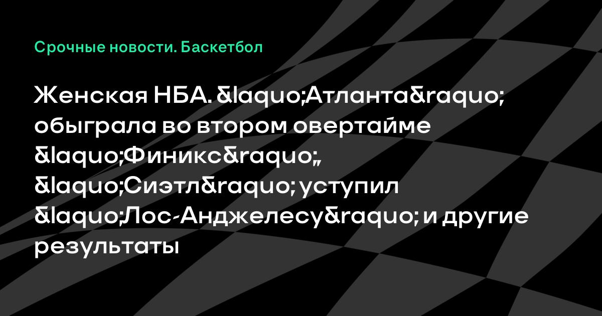 Женская НБА. «Атланта» обыграла во втором овертайме «Финикс», «Сиэтл» уступил «Лос-Анджелесу» и другие результаты