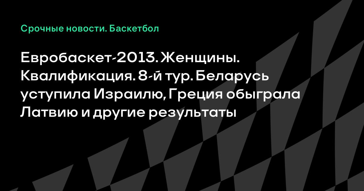 Евробаскет-2013. Женщины. Квалификация. 8-й тур. Беларусь уступила Израилю, Греция обыграла Латвию и другие результаты