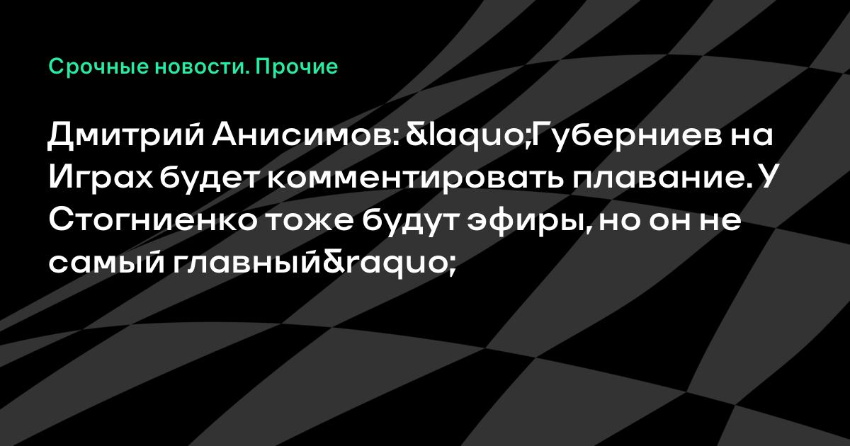 Дмитрий Анисимов: «Губерниев на Играх будет комментировать плавание. У Стогниенко тоже будут эфиры, но он не самый главный»