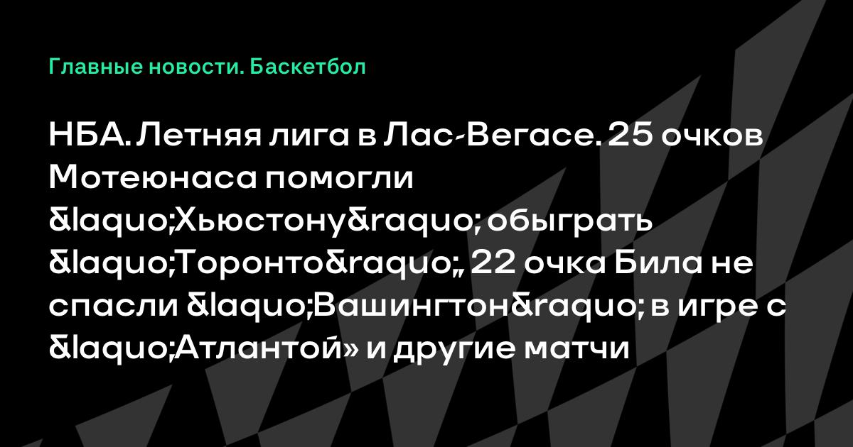 НБА. Летняя лига в Лас-Вегасе. 25 очков Мотеюнаса помогли «Хьюстону» обыграть «Торонто», 22 очка Била не спасли «Вашингтон» в игре с «Атлантой» и другие матчи