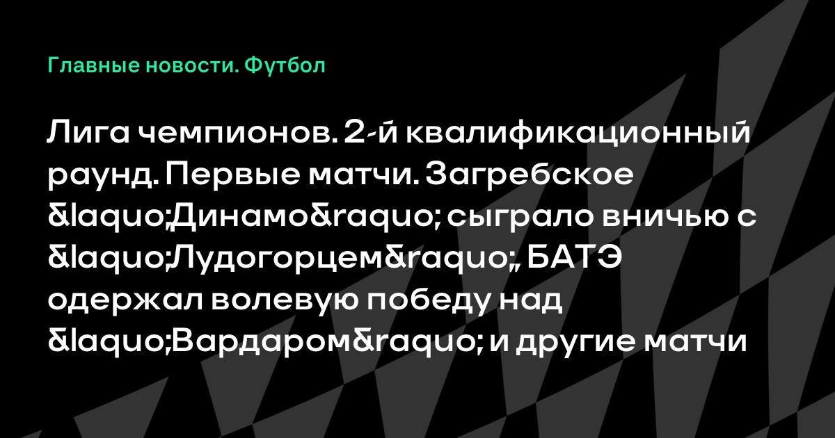 Лига чемпионов. 2-й квалификационный раунд. Первые матчи. Загребское «Динамо» сыграло вничью с «Лудогорцем», БАТЭ одержал волевую победу над «Вардаром» и другие матчи